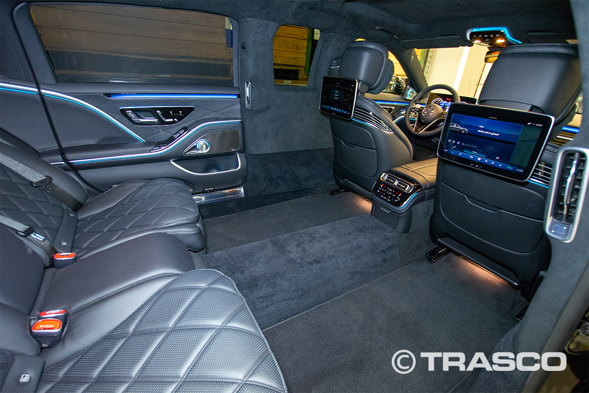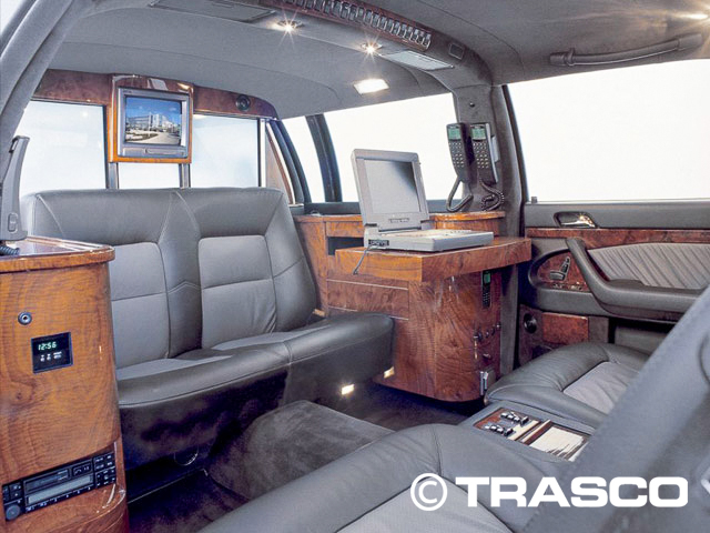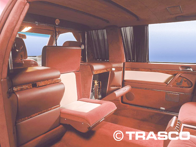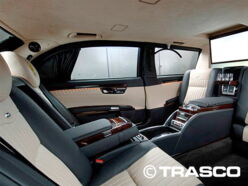 Eine Kombination der feinsten Materialien prägt jede TRASCO-Limousine. Hochwertiges Wurzelholz mit filigranen Einlagen, Leder von höchster Qualität und sorgfältig handgefertigte Innenräume schaffen eine Atmosphäre von zeitlosem Luxus. Gleichzeitig gewährleisten moderne Schutztechnologien des 21. Jahrhunderts aktive und passive Sicherheit, sodass die Passagiere absoluten Komfort und größtes Vertrauen genießen können.